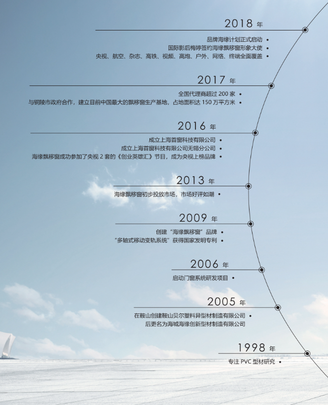 公司為擴大其品牌影響力和知名度,于2017年在央視一套推廣播出,2018年與影視明星“梅婷”簽約,并與華鐵傳媒聯(lián)手合作,在廣鐵、沈鐵投入高鐵廣告。公司始終堅持:“質(zhì)量是企業(yè)生存和發(fā)展的第一生命”為原則,堅持質(zhì)量立企和(海緣)品牌興企的發(fā)展戰(zhàn)略,致力于做好門窗,做有社會擔當?shù)钠髽I(yè)。
